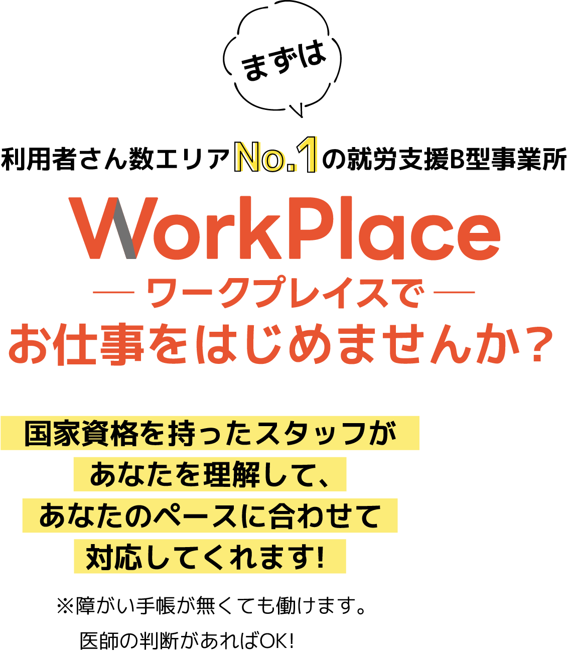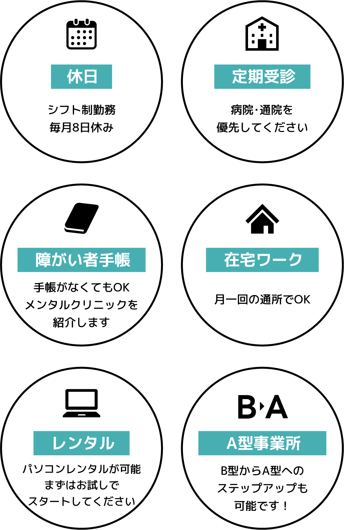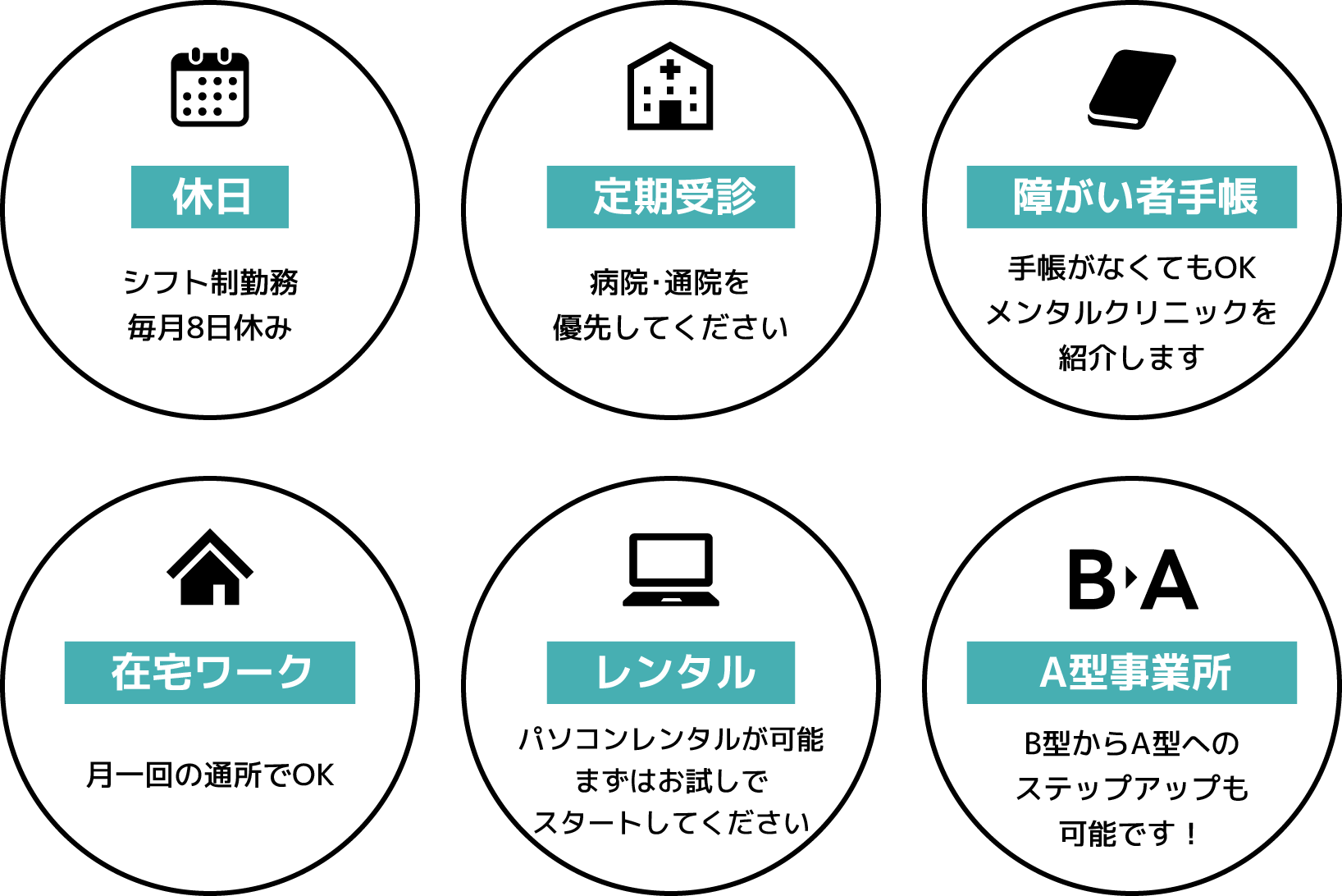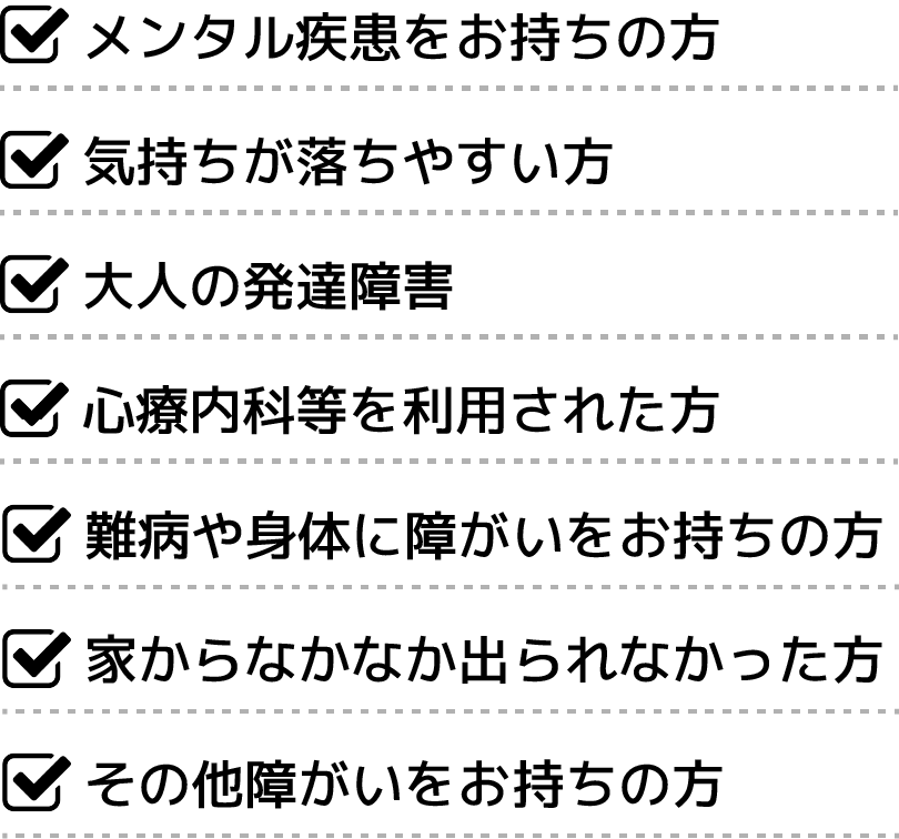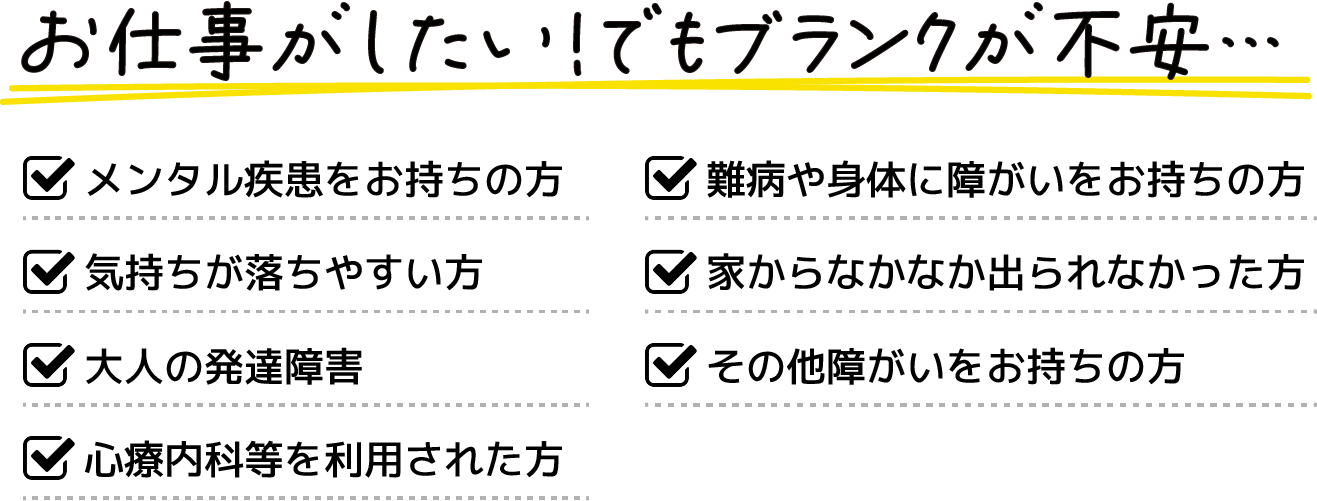 ※障がい手帳が無くても働けます。医師の判断があればOK!