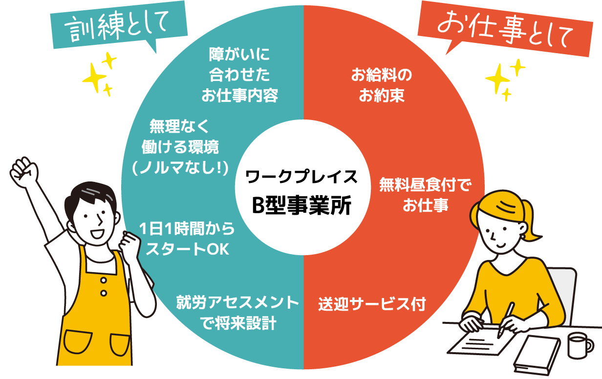 一般就労へ向けて自分のペースでお仕事が出来る場所です。